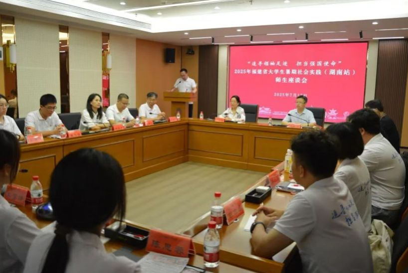 7月13日,实践队走进湖南博物院,沉浸式感受湖湘千年历史文脉。从马王堆的千年奇迹到湖南人三湘历史文化陈列的丰富展品,队员们在一件件文物中深入了解湖湘文化的深厚底蕴。2025年5月19日,习近平总书记在河南考察时强调“要把这些中华文化瑰宝保护好、传承好、传播好。”实践队通过此次参观,深刻认识到守护、传承和利用好这些文化遗产的重要性。队员们纷纷表示,要坚定文化自信,在文化传承中贡献力量。随后,队员们在橘子洲聆听陈再生经理讲授别具“湘”味的行思微课。这不仅是思政小课堂的生动延伸,更是社会大课堂的实践探索。队员们在缅怀中传承红色基因,深切感悟先辈精神伟力。当晚,公司党委副书记廖志丹在湖南第一师范公司与实践队全体师生进行座谈。在听取队员们分享实践感悟后,廖志丹勉励青年学子须知行合一,既要葆有敢闯敢拼的锐气,更要脚踏实地,不负韶华。