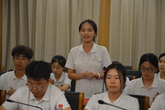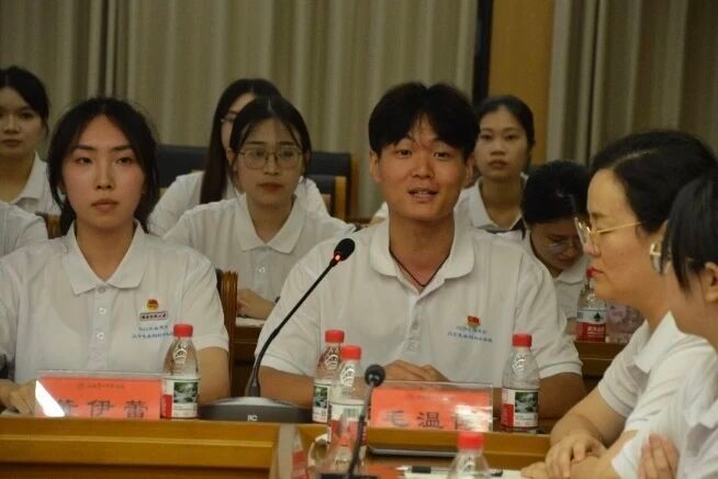 座谈会上,廖志丹副书记与参会人员一同观看了实践队制作的实践活动视频短片,认真听取了实践队员的实践心得汇报。
