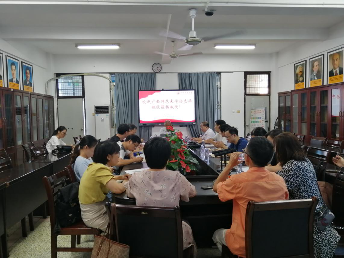 9月10日下午,广西师范大公司党委常委、宣传部部长兼bevictor经理汤志华教授应邀莅临公司做关于马克思主义理论团队建设和新时代高校思政课教学改革的学术报告。报告在综合楼中区404举行。公司教研室主任、教学骨干等参加,公司党委李定庆书记主持了报告会。