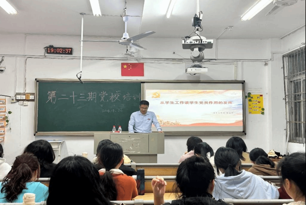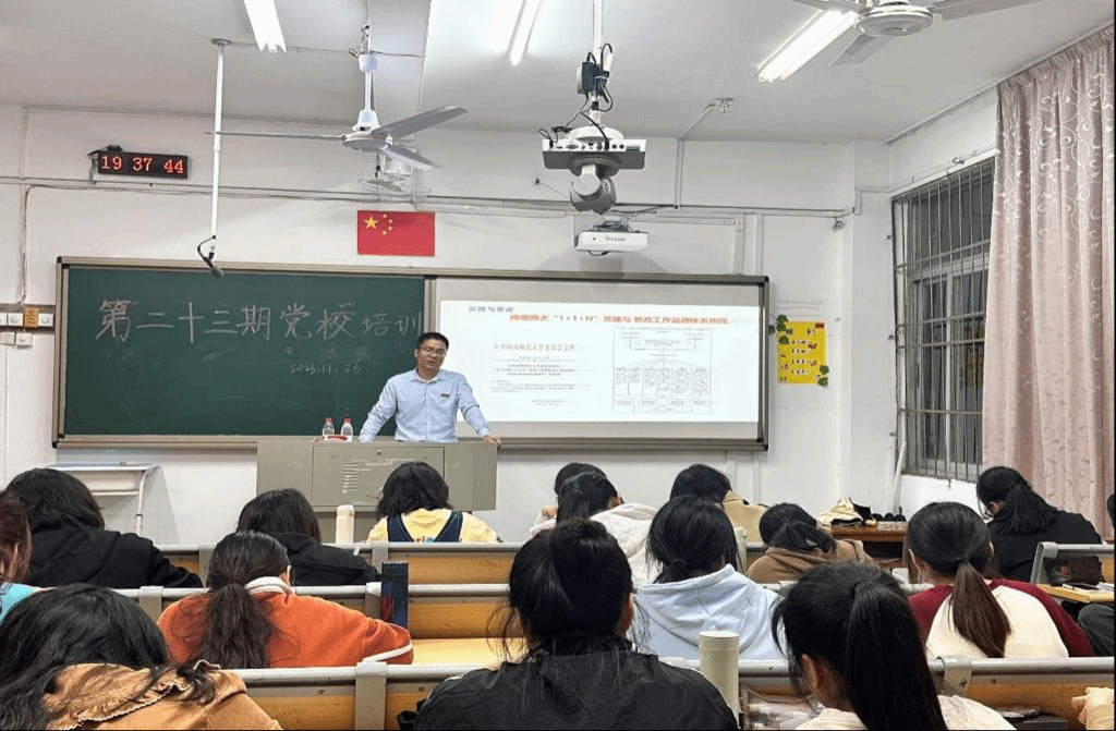11月26日晚上,公司第二十三期入党积极分子培训第六讲在综南201举行。本次培训以《从员工工作谈员工党员作用的发挥》为主题,由校员工工作处林正锋老师主讲,全体入党积极分子参加。
