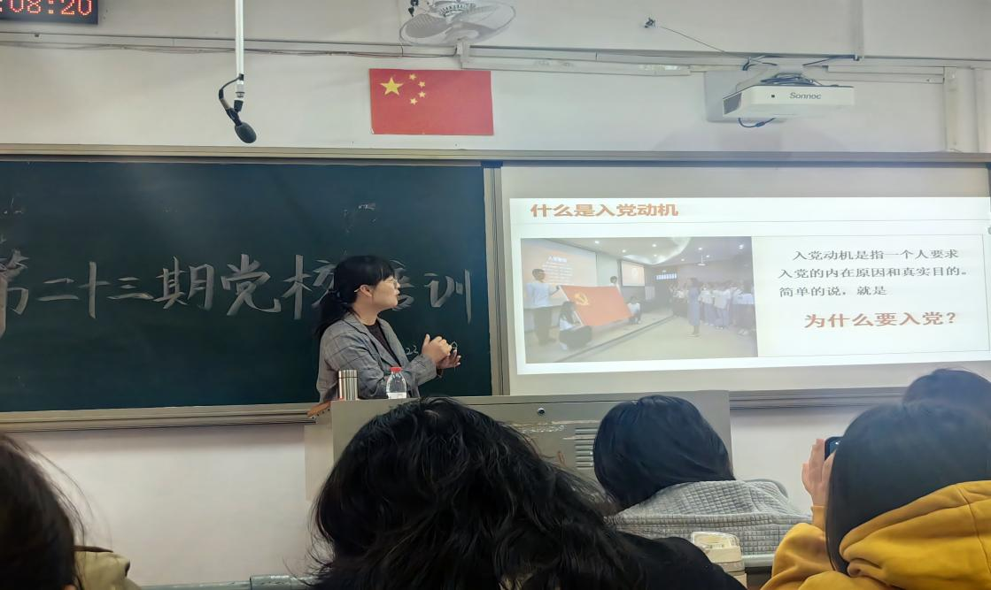 首先,陈晓蕾老师结合习近平总书记在《求是》上发表的题为《扎实做好保持党的纯洁性各项工作》的署名文章引入,她从“产生正确的入党行动”“成为合格党员”“经受住问题和考验”“接受党组织的考验””等四个方面对端正入党动机的重要性展开讲解。她还结合自己的入党故事,在课堂上展示了老一代共产党员回忆入党初心的采访视频。陈晓蕾老师还建议同学们多阅读马列主义经典著作,深入学习马克思主义中国化的最新理论成果,从中汲取智慧和养分,进一步端正自身入党动机。最后,她强调青年老员工们要坚决抵制虚荣被动型、从众投机型、功利实用型和情绪型等错误入党动机的侵蚀。要坚定理想信念,努力把正确的入党动机转化为行动,在实践中不断提高自身的党性修养。