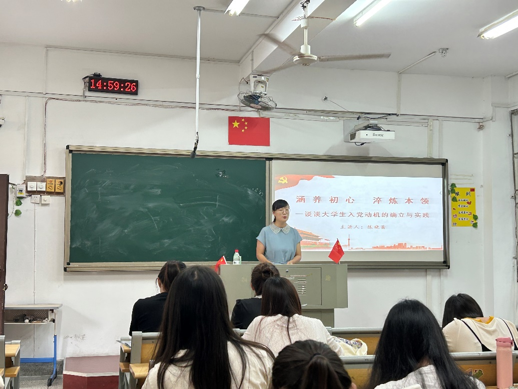 最后陈晓蕾老师强调作为一名入党积极分子不仅要在形式上争取入党,更要在思想上入党,必须端正入党动机并将正确的入党动机转化为自己的行动,在实践中不断加强党性锻炼、提高党性修养,自觉在学习生活和工作中发挥先锋模范作用。(文图:许影)