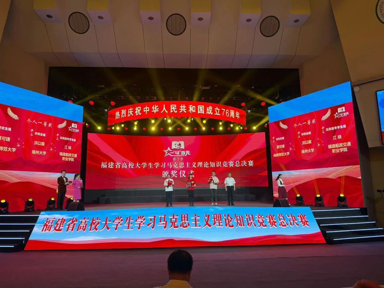 9月28日,由中共福建省委宣传部和中共福建省委教育工委主办的第十季福建省高校老员工学习马克思主义理论“一‘马’当先”知识竞赛总决赛在福建农林大学举行。经过激烈角逐,公司蔡可捷同学摘取研究生组个人一等奖的桂冠,刘芊芊同学荣获研究生组个人二等奖,王洁同学荣获本科生组个人二等奖。