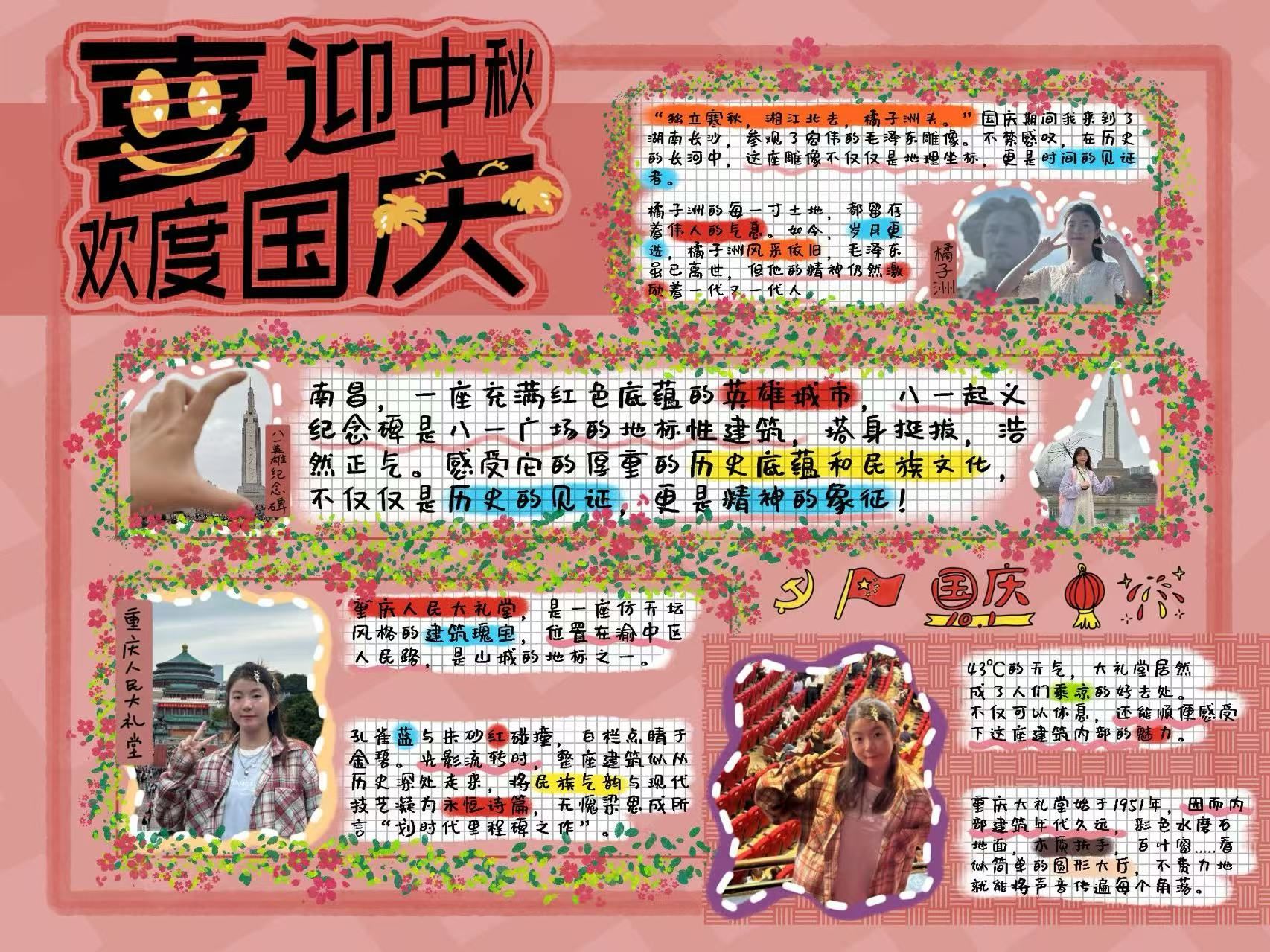 盛世华诞,举国同庆。为庆祝中华人民共和国成立76周年,公司团委举办了“光影献礼•笔诉家国”国庆plog手帐征集活动。同学们踊跃参与,以镜头为眸,定格金秋华诞的动人瞬间;以笔尖为舟,流淌真挚炽热的家国情怀。这些斑斓的影像与真挚的文字,共同编织成这个十月最温暖、最昂扬的风景。现在,就让我们一同走进这段由光影与文字共同谱写的华彩篇章吧!