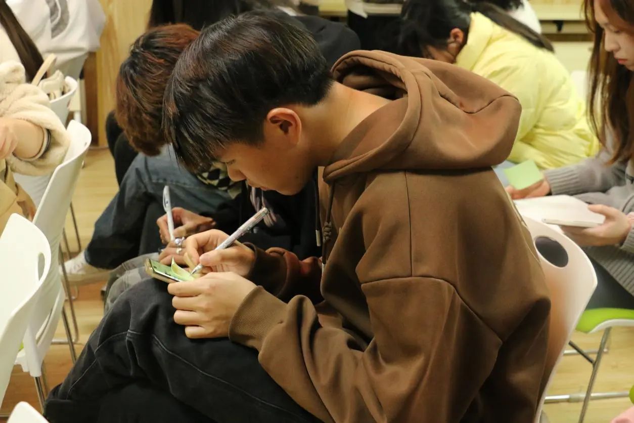 “手指”和“拳头”哪个打人更痛?自由讨论环节,针对同学们提出来的问题,罗老师用生动诙谐的语言阐述历史发展演进及国际发展局势,鞭辟入里地分析了与欧洲发达国家人口少、民族分裂相比,中国统一多民族国家具有无可比拟的优越性。罗老师表示,在中央民族大学学习期间,他深深地体会到中华民族多元一体是先人们留给我们的宝贵礼物,也是我国发展的巨大优势。面对今天复杂的国内外形势,我们更要守望相助、像石榴籽一样紧紧地抱在一起,在中国共产党的领导下让各民族走向共同富裕 实现中华民族伟大复兴。最后,同学们在一张张便签写下对民族团结复兴的美好祝愿。