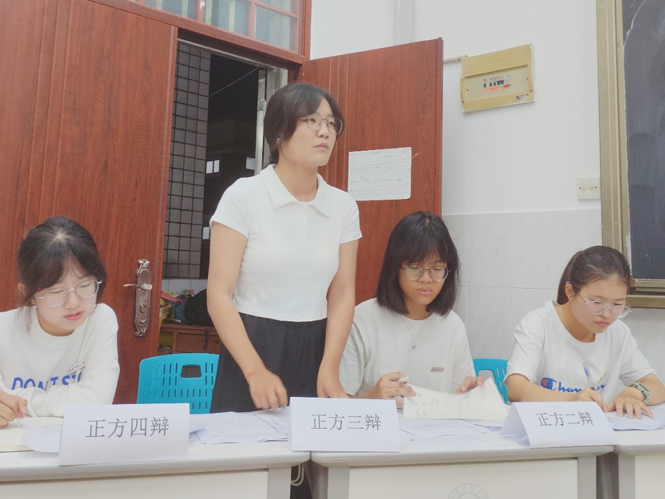 本次活动采用研究生和本科生联动联学方式,由公司硕士研究生郑长英同学就本次辩论友谊赛进行点评,她首先肯定双方选手的随机应变能力,并指出正反方不仅准确把握论点,还思维缜密,准备充分。随后,她深刻剖析双方辩手辩论中的相关论据,指出选手们在气场仪态、语言语速、举例论证等方面仍有进步空间。最后,她鼓励更多同学参与到辩论活动中,在辩论活动中提升自我,探索进步。
