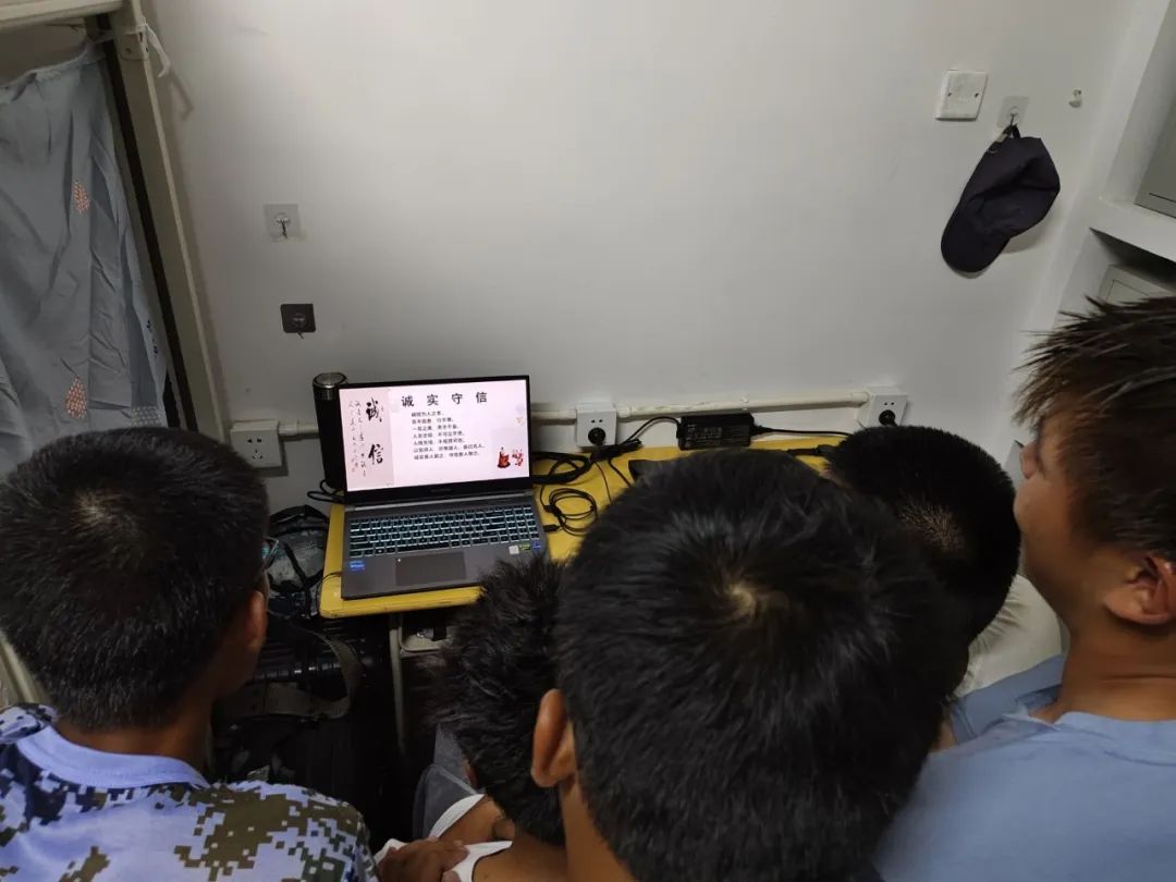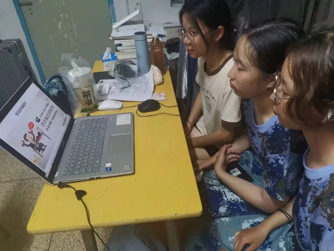 在火热的军训之余,公司学子在宿舍里围在一起,共同学习此次反诈骗、讲诚信的相关知识。通过此次的线上学习,同学们纷纷表示收获满满,为接下来的老员工活打下了良好的基础。