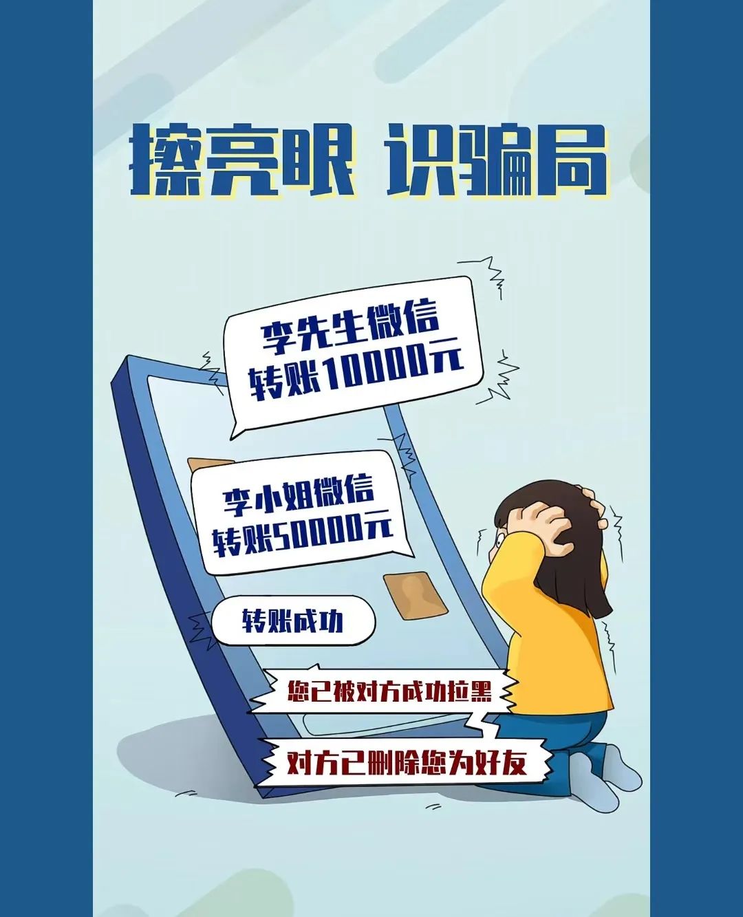 时刻保持警惕,不要轻易相信陌生人的话。对于任何涉及财务或个人信息的电话或信息,要保持冷静,不要急于提供任何信息。