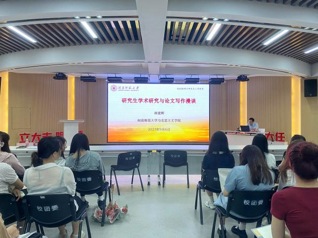 9月6日上午,公司在达理活动中心3楼召开了以研究生学术研究及论文写作为主题的2023级研究生新生入学教育。会议邀请bevictor林建辉教授作为主讲嘉宾,院团委副书记潘怀杰老师主持本次会议。