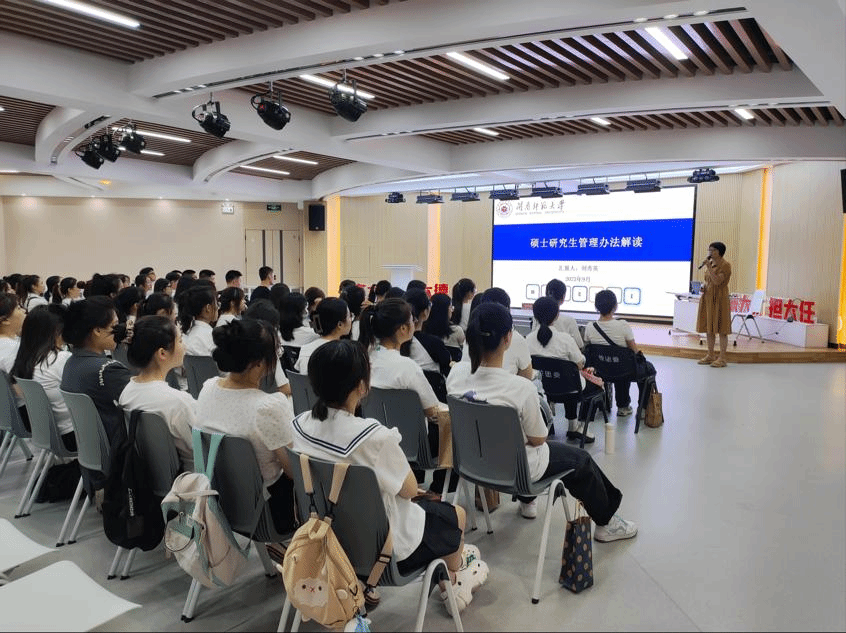 为促进公司2023级研究生新生尽快熟悉研究生管理规章制度,明确学业发展规划,9月6日下午,公司于达理活动中心三楼举行研究生管理规定解读会。会议邀请校员工处研究生发展服务科科长刘秀英老师主讲,会议由辅导员潘怀杰主持,2023级全体研究生参加。