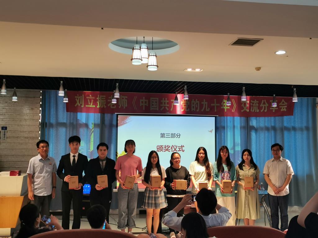为引导同学们切实做到学史明理、学史增信、学史崇德、学史力行,刘老师还向同学们提出了三点建议:一是读书要深入,不能浅尝辄止;二是要有独立的判断思路能力;三是要培养阅读经典书籍的习惯;四是要有欣赏高雅艺术的能力。在师生互动环节中,刘老师一一解答了同学们提出的问题,现场气氛热烈,同学们纷纷表示深受鼓舞、受益匪浅。最后,本次活动在颁奖仪式中圆满落幕。