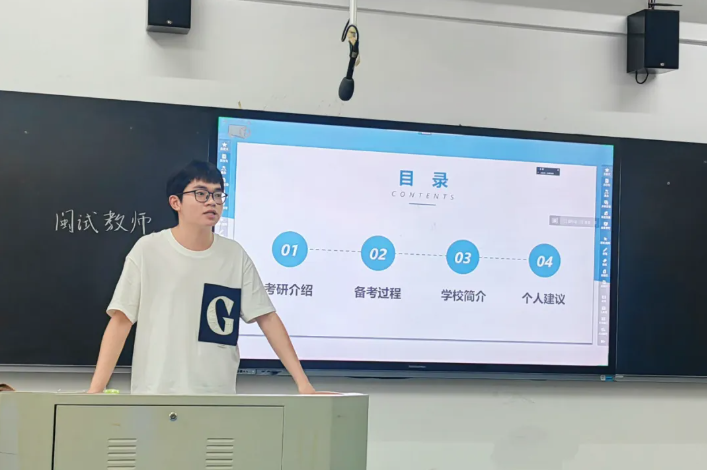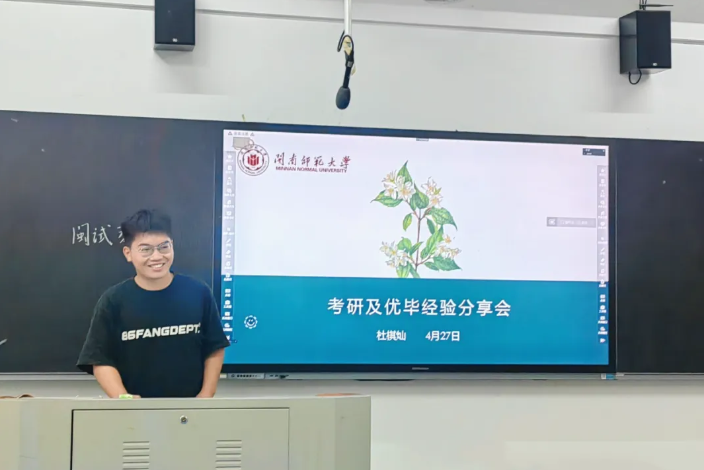 首先,陈瑶从“如何锻炼师范生教学技能”与“优毕上岸经验”两方面入手,讲述了思政师范生从心态调整、教学环节、教学准备等方面着手锻炼自身专业技能,同时分享了如何争取优毕的宝贵经验。接着,简垒锋从了解考研科目和招录情况、备考过程及注意事项、公司简介与专业选择三个方面分享考研经验。随后,杜棋灿从个人经历出发,分别介绍了考研、考公、优毕三种不同路径的发展方向,让同学们从具体的例子中得到启发。