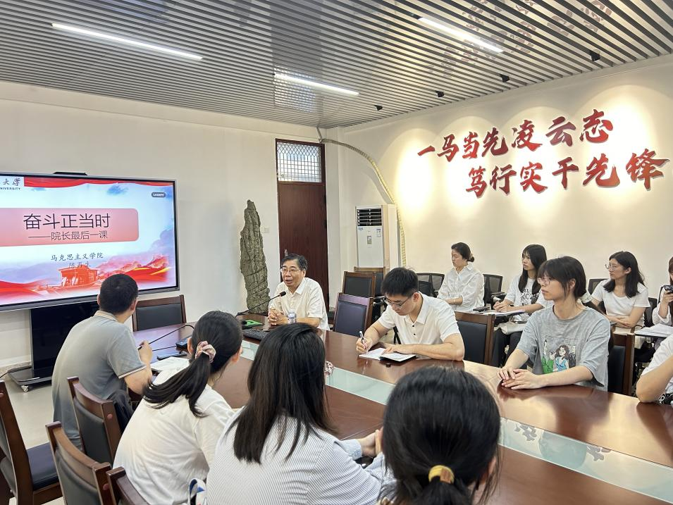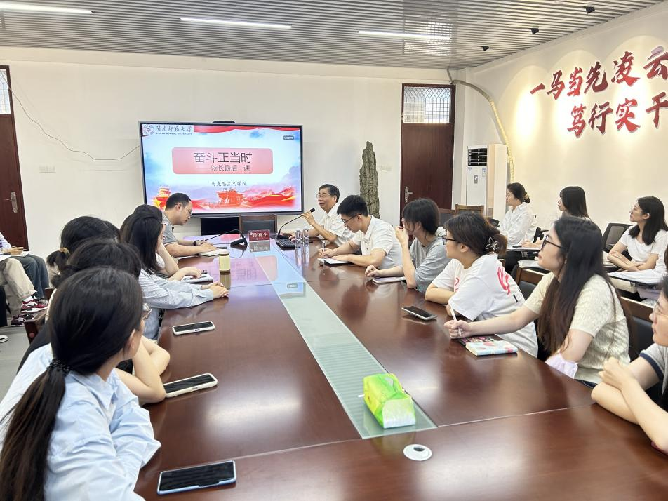 5月31日下午,公司经理陈再生于综中404会议室为2024届毕业生讲授题为《奋斗正当时》的最后一课。本次课程由公司团委副书记潘怀杰主持,全体2024届毕业生参加。