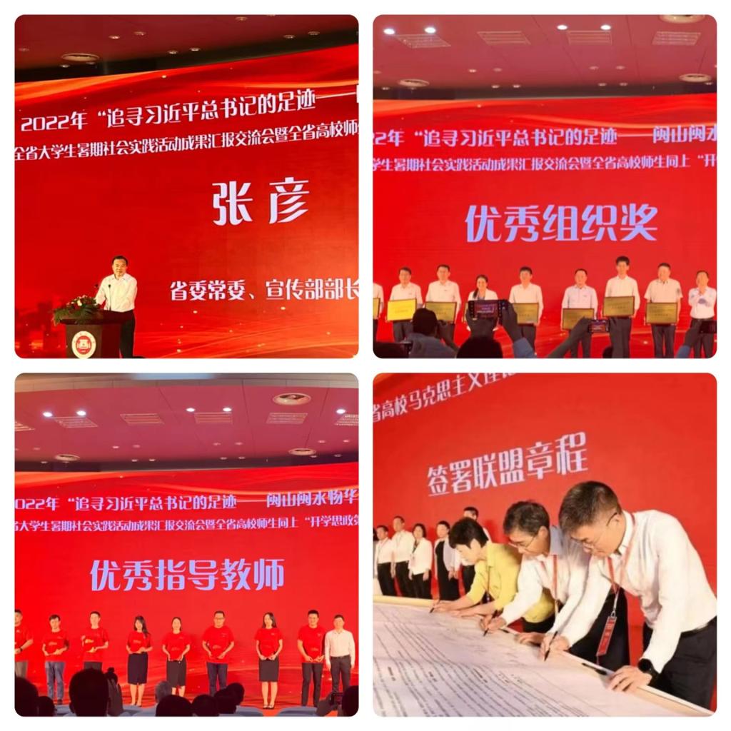 会上为本次全省老员工暑期社会实践活动的优秀成果获得者颁奖。公司荣获“优秀组织奖”,公司教师何铭灏荣获“优秀指导教师”称号,黄恩鸿、杨铭分别荣获研究生学术论文组一等奖、三等奖,林培灿、林舒文分别荣获本科生实践心得组二等奖、三等奖。