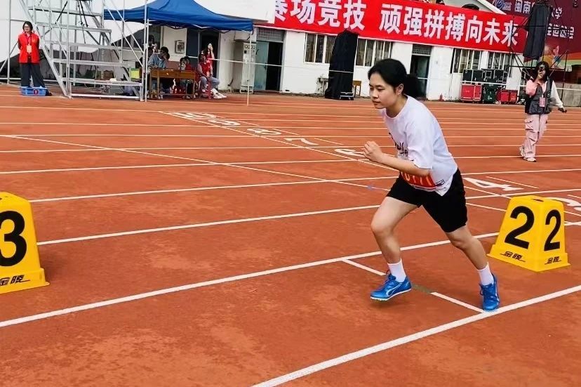 公司2023级二班魏熠欣在女子甲组三级跳远决赛中获得第八名