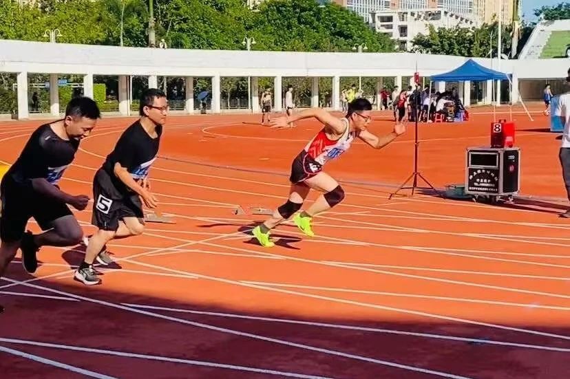 公司蔡毅强老师在中年丙组男子100米决赛中获得第一名