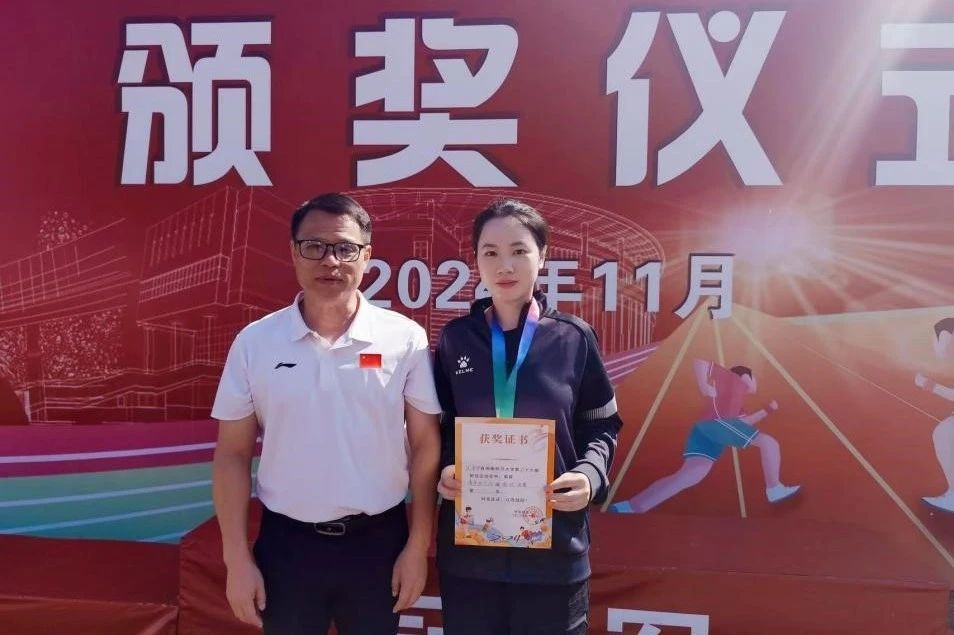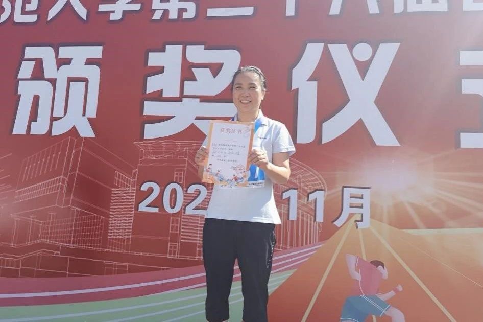 公司黄艺羡老师在老年丙组女子跳远决赛中获得第三名
