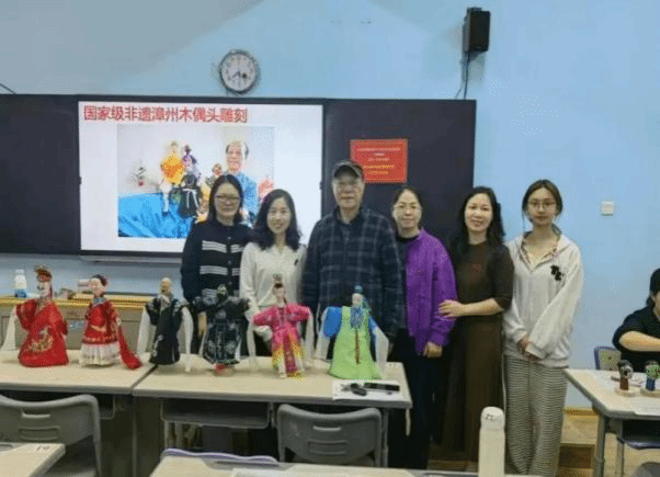 近日,公司院科普基地的师生在非遗木偶雕刻艺术家杨亚州的带领下,前往漳州一中社团课进行参观学习。(通讯员 姚思盈)