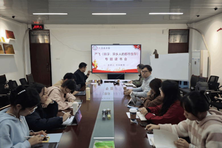 12月12日晚,公司第六期“一马读书会”在综合楼中区404举行,本次读书会由法公司方劲教授领读严飞《悬浮:异乡人的都市生存》一书,姚禹老师和员工参加本次读书会,读书会由何铭灏老师主持。(通讯员 缪俊杰)