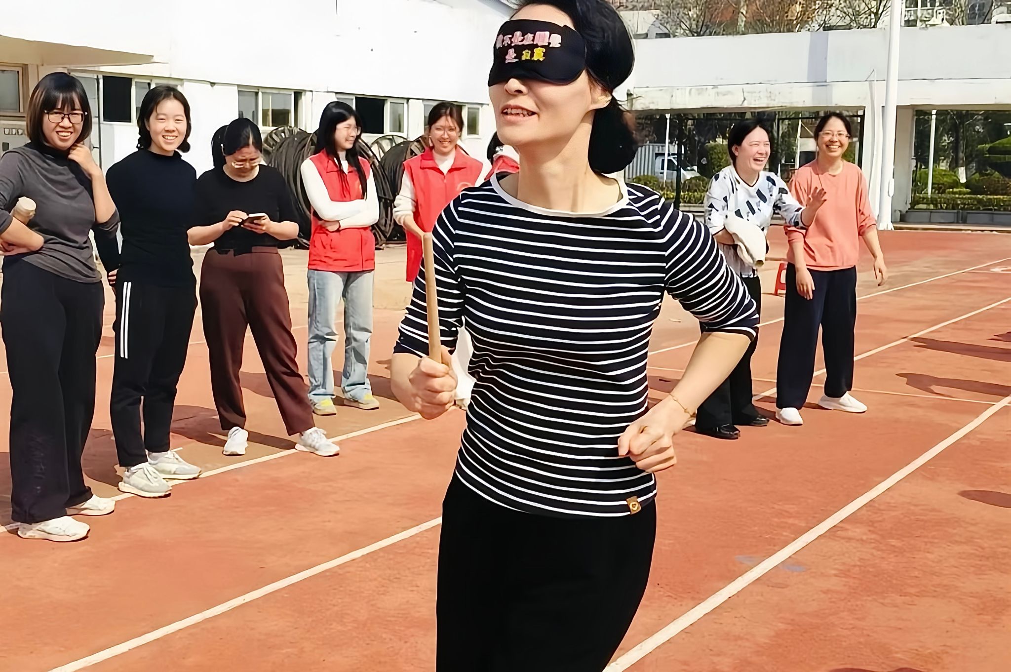 本次比赛设置了跳绳、盲人击鼓、快乐背夹球接力等项目。在跳绳比赛中,老师们轻盈的身姿如同翩翩起舞的蝴蝶,展现了女性的柔美与力量;盲人击鼓项目则充满了欢声笑语,老师们在蒙眼的状态下,依靠队友的指引,精准击鼓,赢得了阵阵掌声;背夹球接力更是将比赛推向了高潮,老师们两两一组,背靠背夹球,齐心协力冲向终点,展现了团队合作的力量。