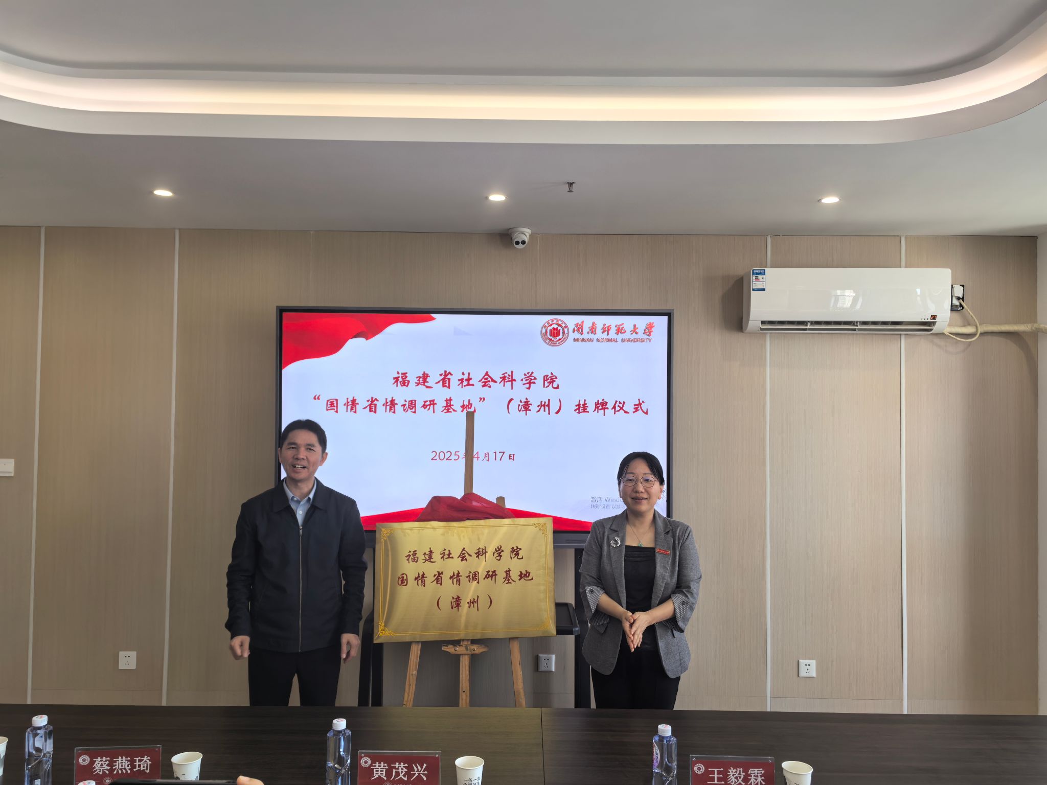 调研座谈期间,黄茂兴与廖志丹共同为“福建社会科公司国情省情调研基地(漳州)”揭牌。