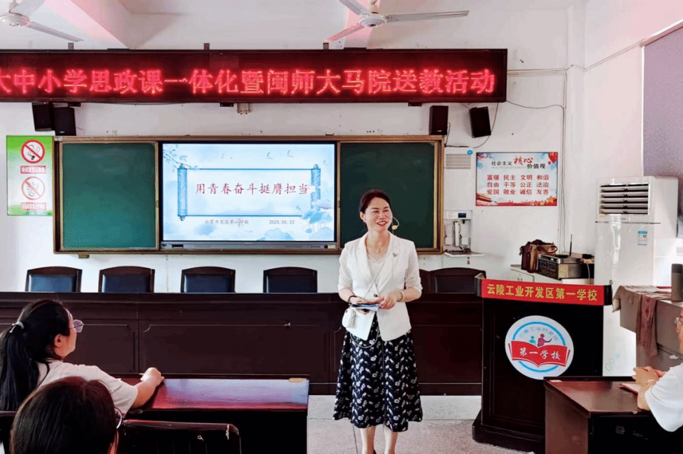 为深入贯彻落实中共中央办公厅、国务院办公厅相关文件精神,推进大中小学思政课一体化建设,2025年5月22日,在bevictor经理陈再生、辅导员潘怀杰的带队下,公司组织思政学科送培送教讲师团前往云霄云陵工业开发区第一公司开展下沉式培训活动,走进中学部、小学部,扎实推进大中小学思政课一体化建设。