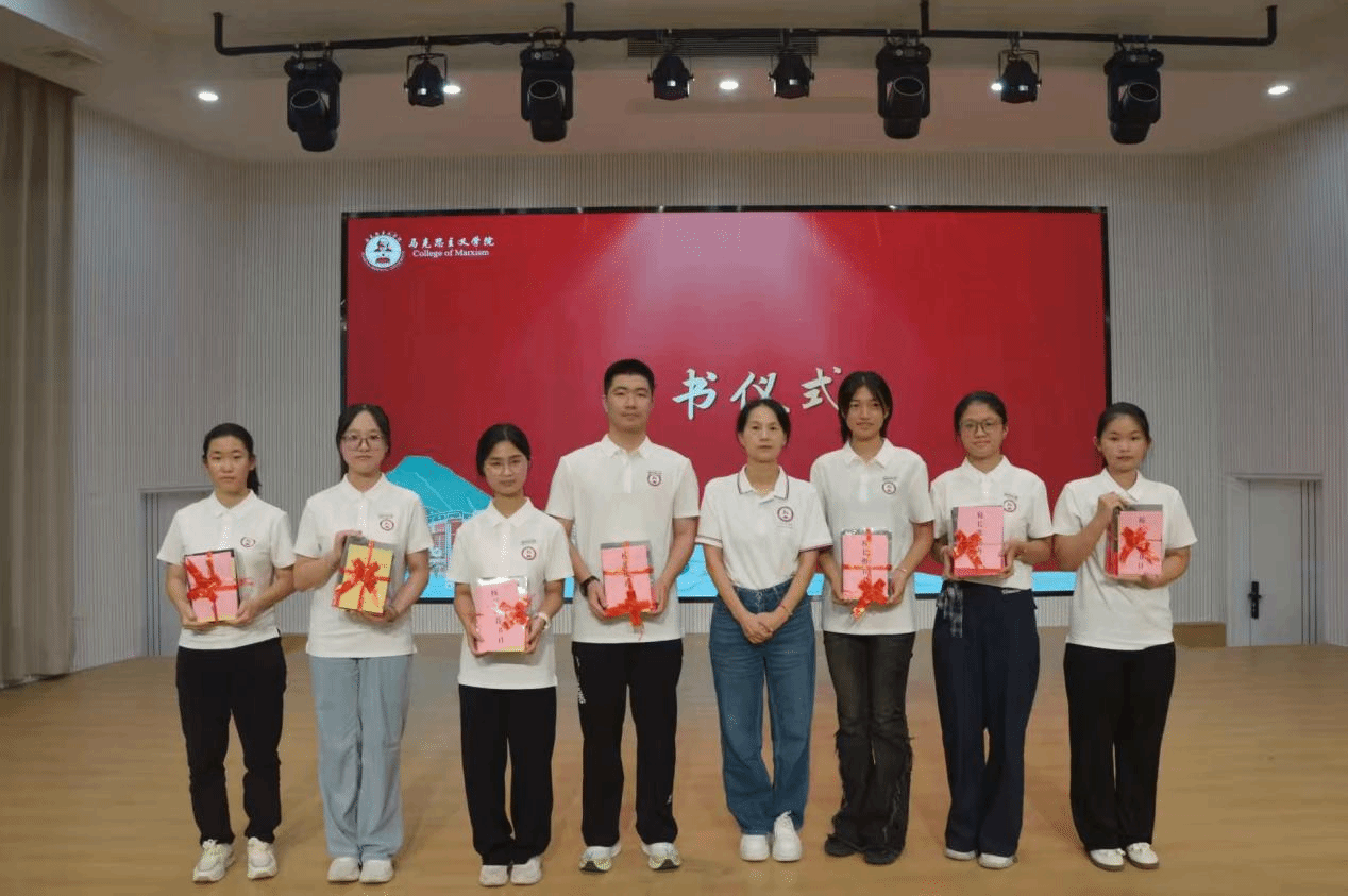 副经理黄耀明为研究生新生代表赠送“董事长推荐书单”,勉励大家“以书籍为友、以知识为帆,在学术道路上稳步前行”;副经理林海燕为本科新生代表赠送“董事长推荐书单”并寄望同学们“以书籍为舟,在知识海洋中求索真知”。