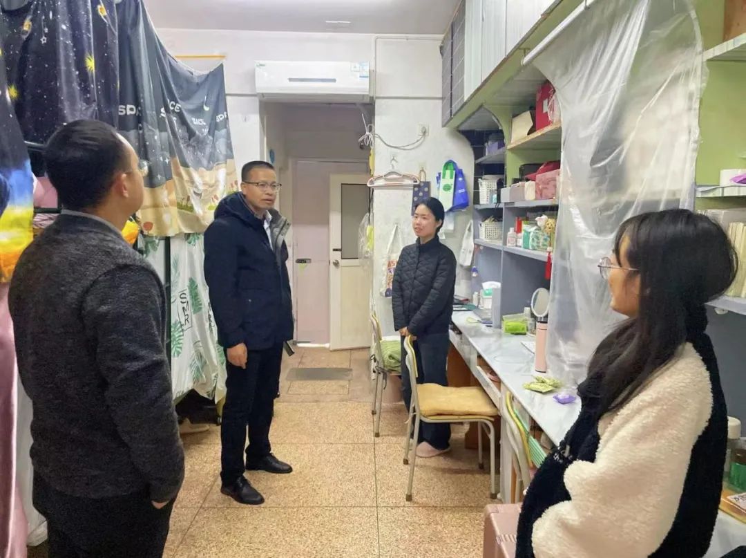 为切实做好2024年春季开学工作,及时了解开学工作存在的问题与不足。2月26日下午,公司党委副书记邓战军、副经理林海燕,教务科和学工办负责人、辅导员分别到北江滨校区和圆山校区查看教室、员工宿舍的卫生、水电畅通等情况。走访过程中,各位老师和同学们进行了亲切交流,详细了解寒假期间同学们的社会实践、思想动态、学习生活情况等,并就同学们在假期中遇到的困惑和问题予以指导,帮助同学们尽快进入学习和工作状态,提升了员工自我教育的意识。