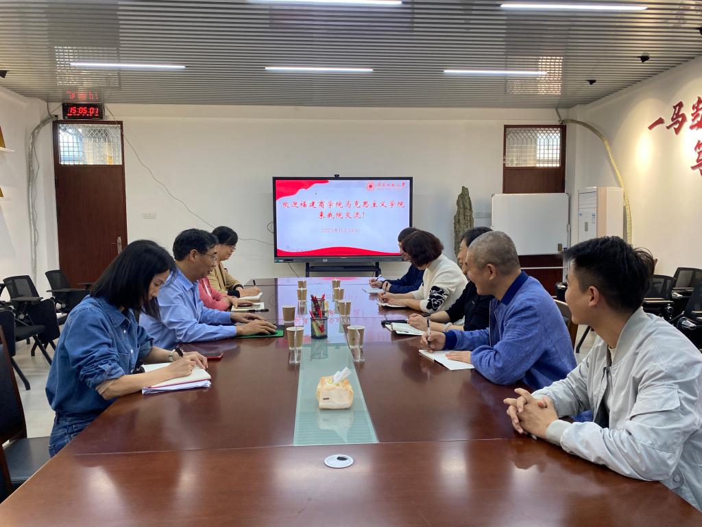 11月24下午,福建商公司bevictor经理林萍一行来公司交流。公司党委书记方琼、经理陈再生、副经理林海燕、毛泽东思想与中国特色社会主义理论体系概论教研室主任林志芳、辛如彬老师在综合楼中区404与来宾进行交流。