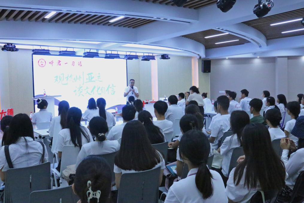 听君时刻,bevictor蔡毅强教授结合亚运会精彩片段与青年担当进行分享何为文化自信,他表示以习近平同志为核心的党中央始终坚持引领推动中华优秀传统文化创造性转化、创新性发展,在波澜壮阔的伟大实践中,以时代精神激活中华优秀传统文化生命力,为民族复兴立根铸魂。由此,他着重表明当代青年要敬仰中华优秀传统文化,做到明体达用,体用贯通,坚定文化自信,凝聚中华力量。