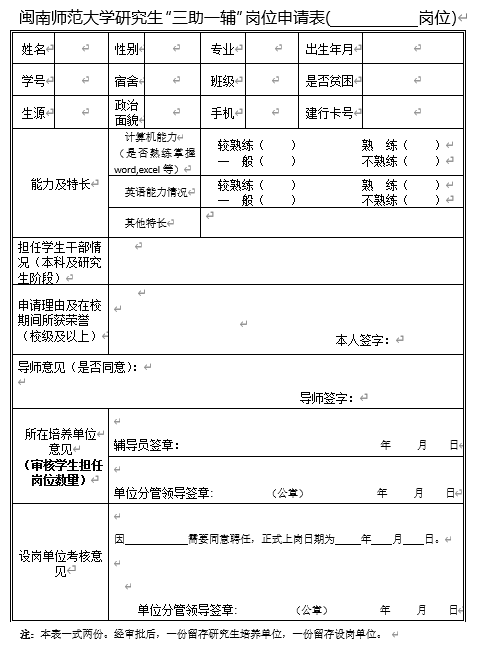 为进一步提高研究生科学研究、教学实践、组织管理等方面能力,完善研究生资助体系,根据《伟德体育研究究”三助一辅”工作管理办法(修订)》(闽南师大〔2020〕153号)和《伟德体育研究生担任员工辅导员工作管理细则(试行)》(闽南师大〔2020〕154号)文件要求,决定开展bevictor2023-2024学年研究生“三助一辅”工作。现将相关事宜通知如下:
