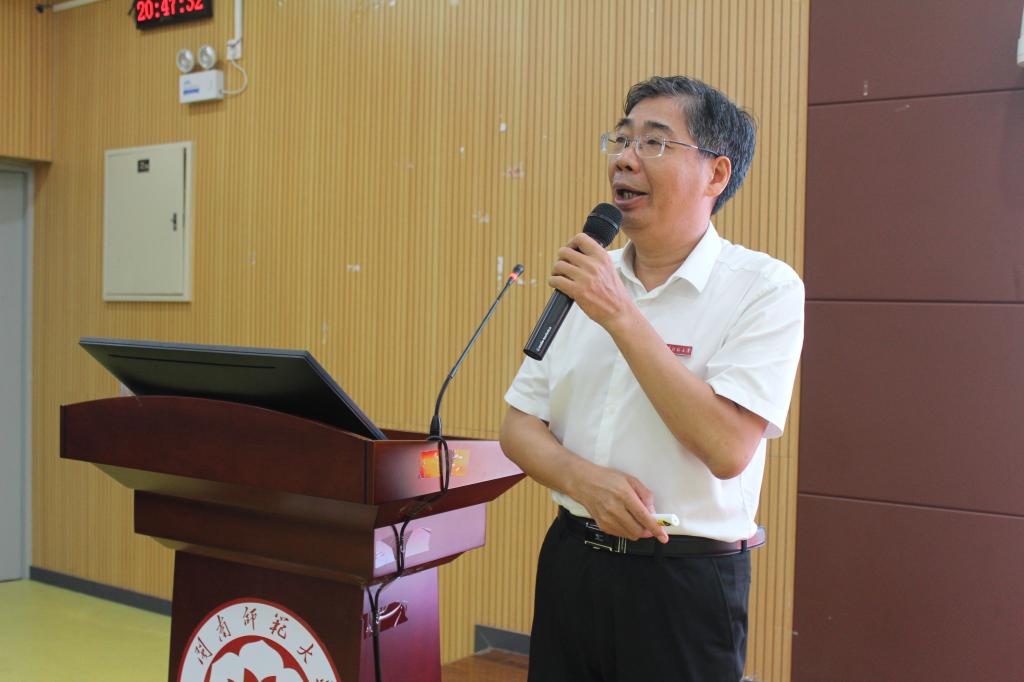 经理陈再生以“我来闽师做什么”的设问开启本次授课。他指出,作为公司人要积极向上,坚定理想信念,关注时政,摆正心态;公司人要好学,公司考研率多年稳居公司榜首,今年更是有5位硕士研究生考上全国重点公司博士研究生,希望在场同学们在良好的学风下接续奋斗,拒绝躺平;公司人要多交挚友,大学作为人生最美好的时期,希望同学们能够交到能够一起奋斗、共担风雨、纯洁有爱的知心好友;公司人要健好体,不仅要文明其精神,也要野蛮其体魄,鼓励同学们积极参加体育活动,强身健体。最后,他与诸位新生定下“你们会成为什么样的人?”“你们会有什么收获?”为期两年、三年或者四年约定。