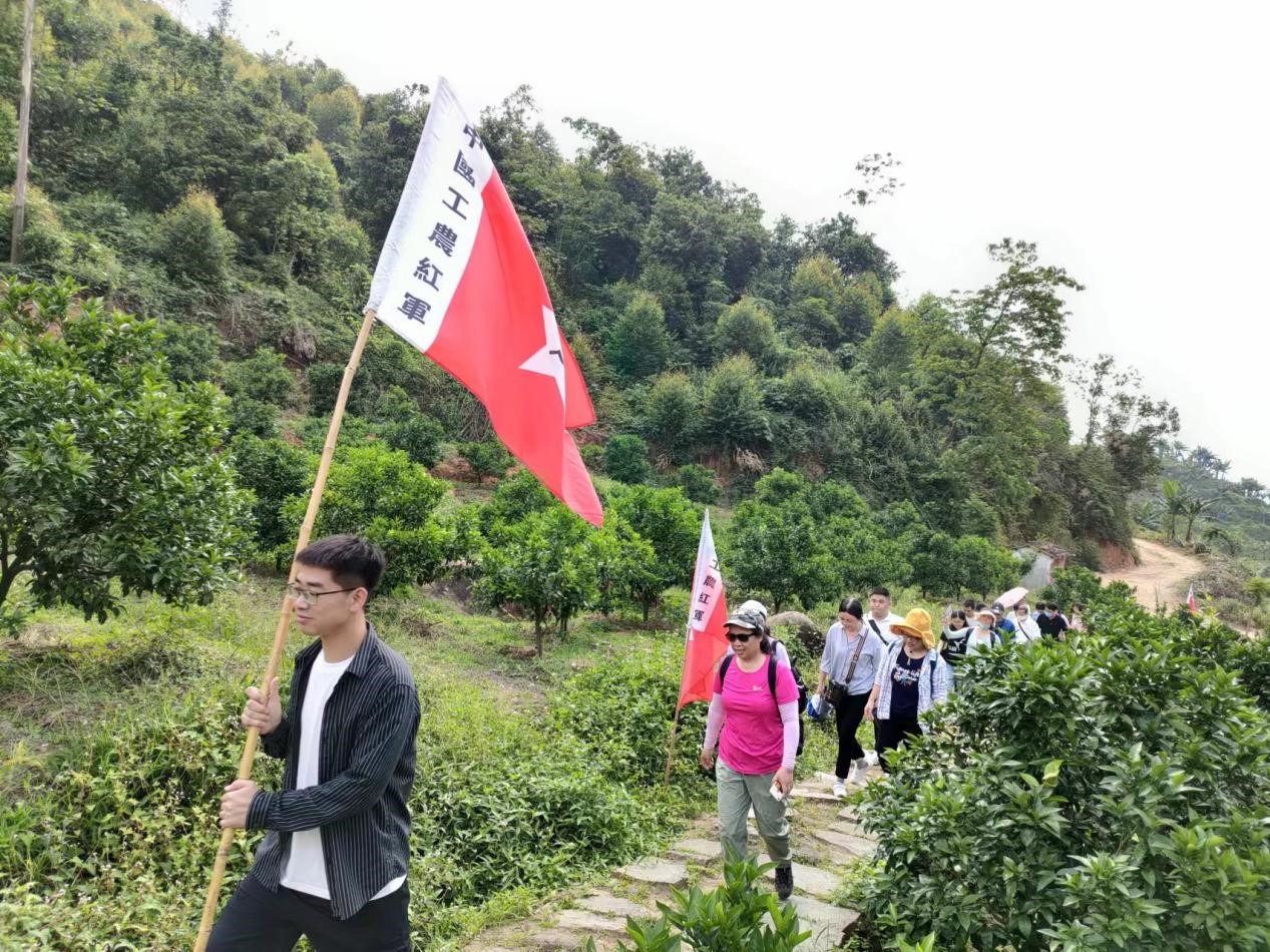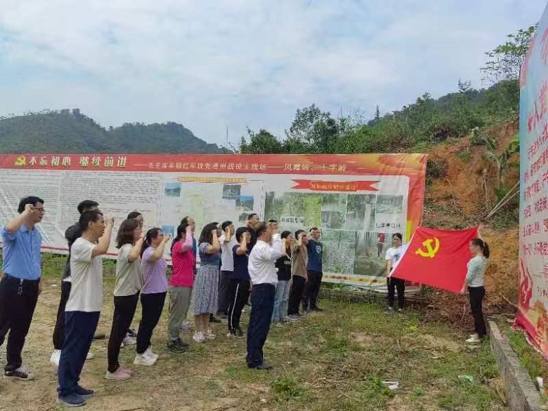 活动伊始,全体党员同志扛红军旗,重走1932年毛主席率领红军攻克漳州行军路线,沿红军路行军到风霜岭山顶,听漳州战役讲解,看红军树、作战指挥所、古战壕、古驿站旧址、唐宋元明清时期的国道、观景台通览漳州战役主战场全貌;之后全体党员在公司党委书记李定庆同志带领下在古战场重温入党誓词。