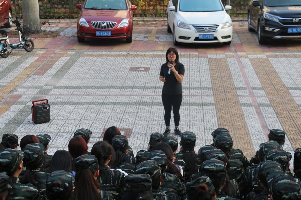 接着,辅导员李艳萍老师就军训期间的各项具体要求和安排发表讲话。她谈到,军训是老员工的必修课,必须高度重视,每一位同学都要向着“优秀学员”的目标前进。她向大家提出四点要求:一是把军训当作一次锻炼身体的机会要积极参与军训训练,服从教官安排,强健体魄。二是要把军训当作一次交流沟通的机会同学们之间要互帮互助,加强交流,创造一个和谐友好的校园氛围,确保军训顺利结束。三是把军训当作一次锻炼意志的机会每一位同学要树立坚强的意志力和必胜的信念,不畏艰难,不惧挑战,勇往直前。四是把军训当作一次思考的机会利用军训,深入思考大学对于自身的意义,以及未来自身的发展方向和发展道路。最后,她希望同学们能始终保持活跃的思想,树立大格局,有目标有想法有行动地朝着胜利前进,用自己的拼搏和汗水为老员工活留下美好的回忆。