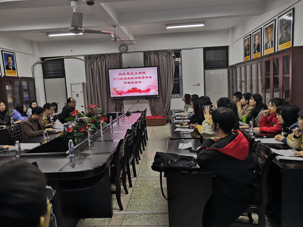 在开题报告会上,2019级思想政治教育专业的十位同学依次作约5分钟的毕业论文开题汇报,随后评议组老师从选题意义、研究的创新点、写作内容的结构安排、研究方法、写作规范等方面对开题汇报进行了详细评析,提出了具有启发性的意见和建议。