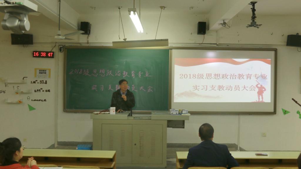12月25日下午,公司2018级实习支教动员大会于砺志楼225召开,经理陈再生教授、思想政治教育系主任景云教授出席了本次大会。