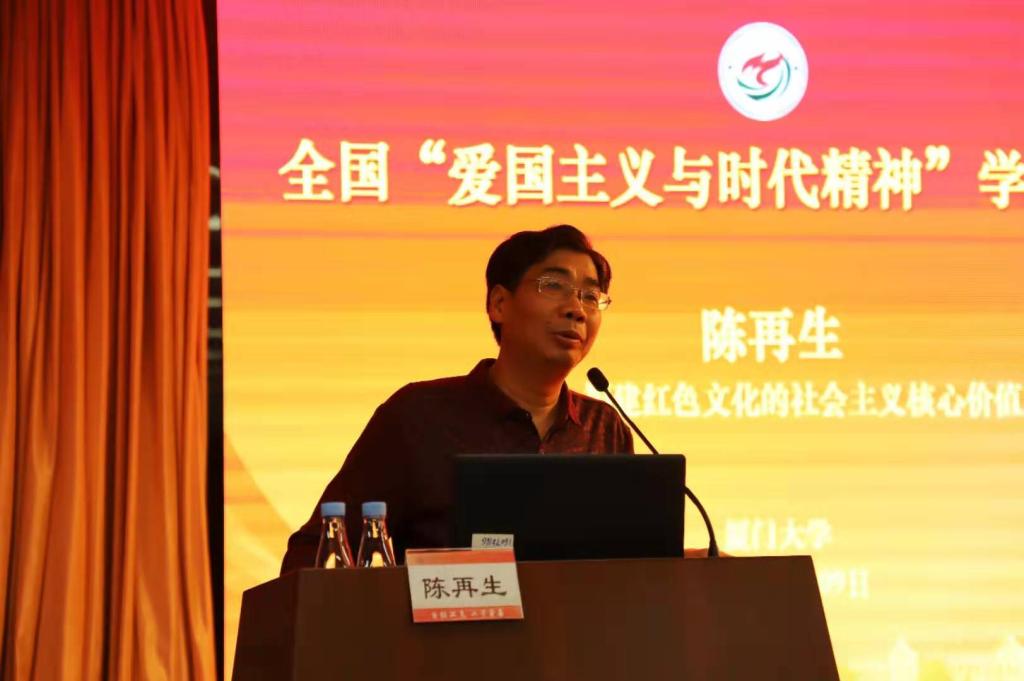 研讨会期间,与会专家学者围绕会议主题,聚焦新时代爱国主义的时代内涵与重要意义、新时代爱国主义的实施路径、爱国主义与高校思政课教学、爱国主义话题的多元探索等问题展开热烈研讨。根据会议主办方安排,公司陈再生教授在9日下午做了“福建红色文化的社会主义核心价值观蕴涵”的主题发言,阐述了福建红色文化在国家层面具有“独立”“解放”的明确价值目标、在社会层面具有“自由”“平等”的鲜明价值取向以及在个人层面具有“爱国”“奉献”的执着价值追求。