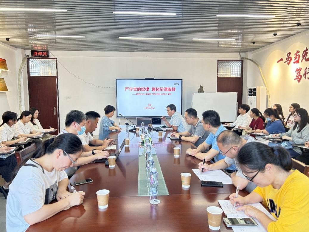 6月14日下午,公司党委书记方琼在综合楼中区404会议室为师生党员讲授题为《严守党的纪律 强化纪律监督》的党纪学习教育专题党课,公司50余名师生党员参加了学习。