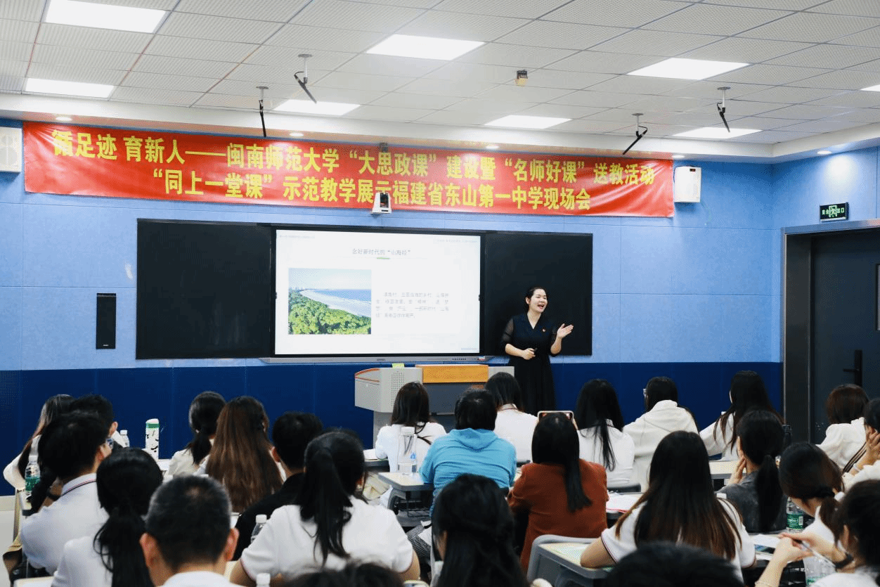 同上一堂课。示范引领深耕课堂,让“大思政课”资源再整合、教学再提升、创新再上新台阶。来自漳州市高校思政课教师、东山县中小学思政课教师围绕习近平总书记考察福建时重要讲话精神进行教学展示,交流研讨谷文昌先进事迹融入大中小学思政课一体化建设的做法与经验。漳州卫生职业公司bevictor教师吴菲琼、东山一中教师陈春苗等分别做了《再念“山海经”,见证澳角蝶变——崇尚精神是中华民族的优秀传统》《舞台上的思政课——传承红色基因,讲好谷公故事》等示范教学展示。东山县教育局局长朱柯源说,近年来,东山县与bevictor共建合作,积极打造了学科主课堂、校园浸课堂、网络云课堂、社会大课堂等,助推大中小学思政教育一体化和“大思政课”建设,推动了公司思想政治工作高质量发展。