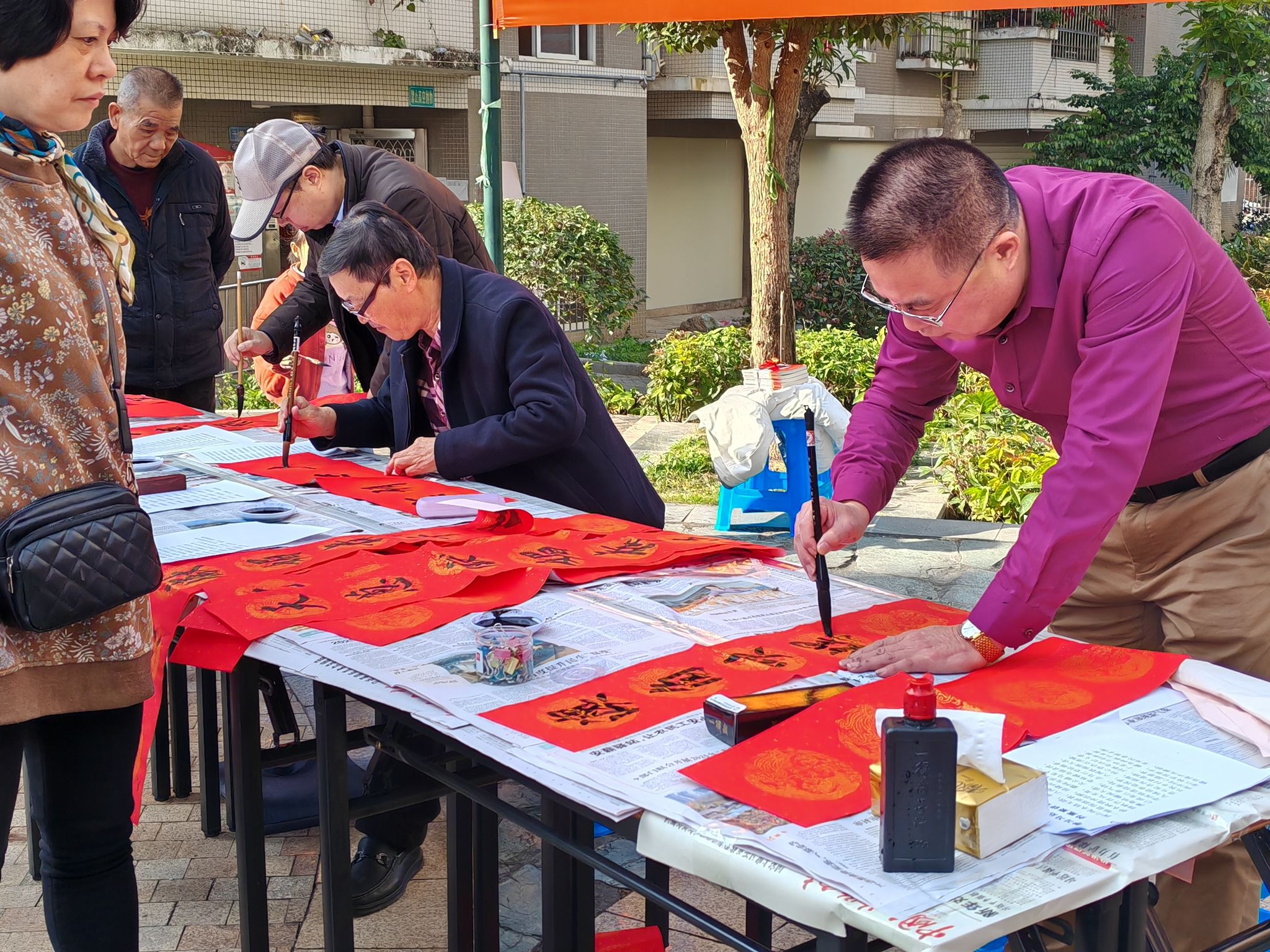 活动现场,集团专家学者应邀与社区书法爱好者一道挥毫泼墨、笔走龙蛇,行、楷、草等多种书体各显神韵,一个个苍劲有力的福字、春字和寓意吉祥的春联跃然纸上。从“春盈闽地”到“龙江焕彩”,从“闽山闽水情无限”到“澳角吹螺闻大道”,一幅幅寓意吉祥的春联承载着满满的美好祝福,书写出新时代的盛世华章。