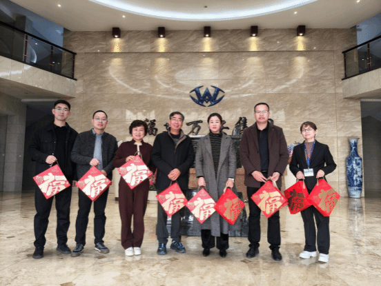 在集团领导的带领下,实地参观万安集团产品展览馆,深入了解集团特色产品及技术创新。交流中,公司党政领导一行了解2007级员工傅秋芬(现为福建万安实业集团副总裁)职业生涯发展情况,并就思政专业毕业生求职去向、多元化职业发展规划等展开座谈交流,同时赠送员工迎福春联并合影留念,期盼员工常回母校看看。