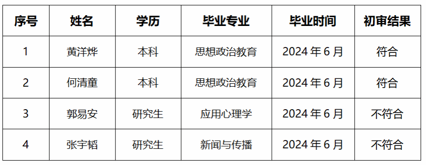 根据《bevictor面向2024届毕业生公开招聘科研助理招聘启事》基本条件、招聘岗位及要求,经资格审查,现将审查结果公示如下: