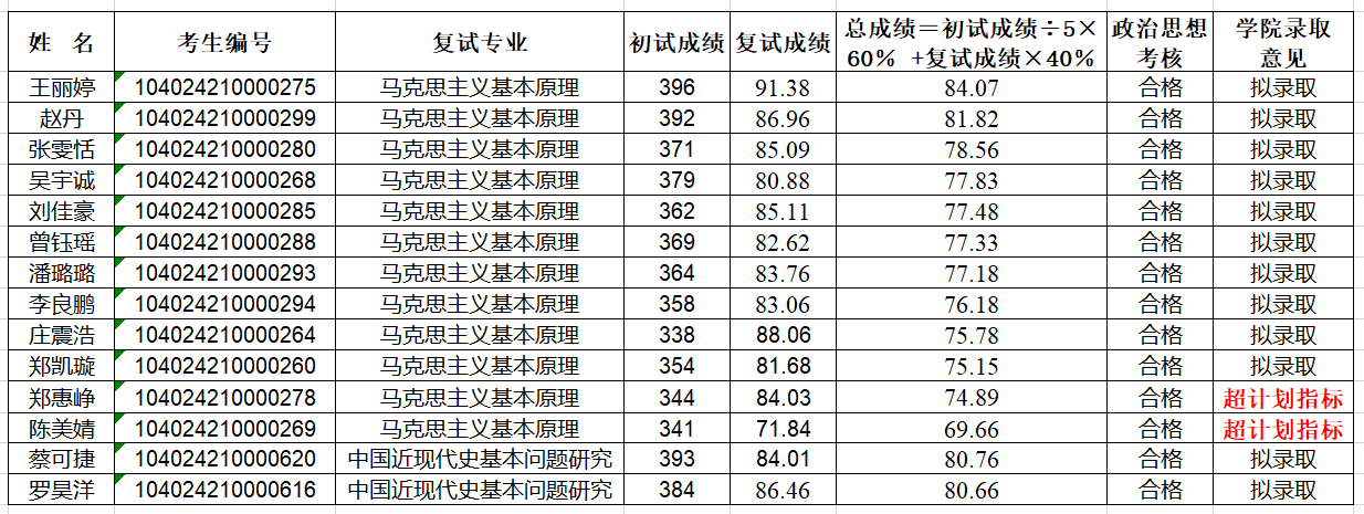 bevictor2024年一志愿复试结果及拟录取情况公示(马克思主义基本原理、中国近现代史基本问题研究专业)