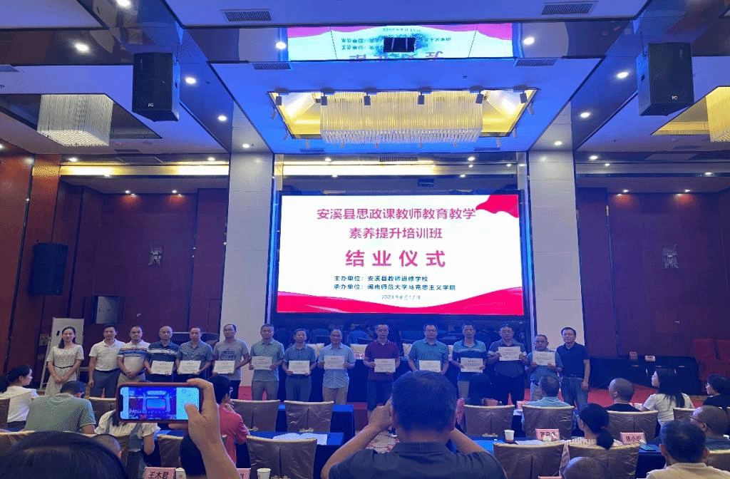 8月17日上午举行了结班仪式。安溪县教师进修公司培训处主任王云晖、副主任黄上海,以及安溪县政治学科教研员李培火和冯财富出席结班仪式。
