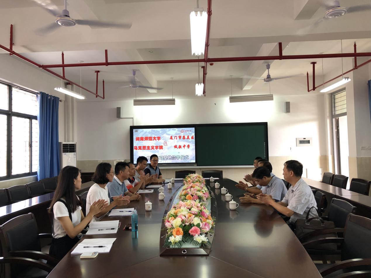 2018年9月13日下午,公司与厦门市集美区诚毅中学举行实习基地共建签约仪式,参加此次签约仪式的有公司经理陈再生教授、经理助理何孟飞副教授、思想政治教育系主任景云副教授以及诚毅中学郭志萍董事长、钟顺利副董事长、教务负责人杨敏老师、杨祖胜老师、王勇身老师及全体政治学科教师。