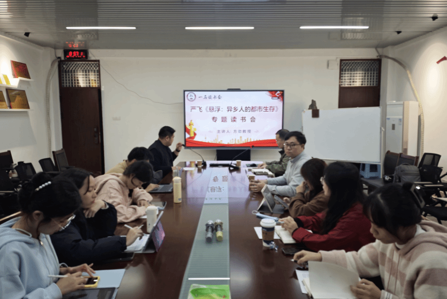 12月12日晚,公司第六期“一马读书会”在综合楼中区404举行,本次读书会由法公司方劲教授领读严飞《悬浮:异乡人的都市生存》一书,姚禹老师和员工参加本次读书会,读书会由何铭灏老师主持。