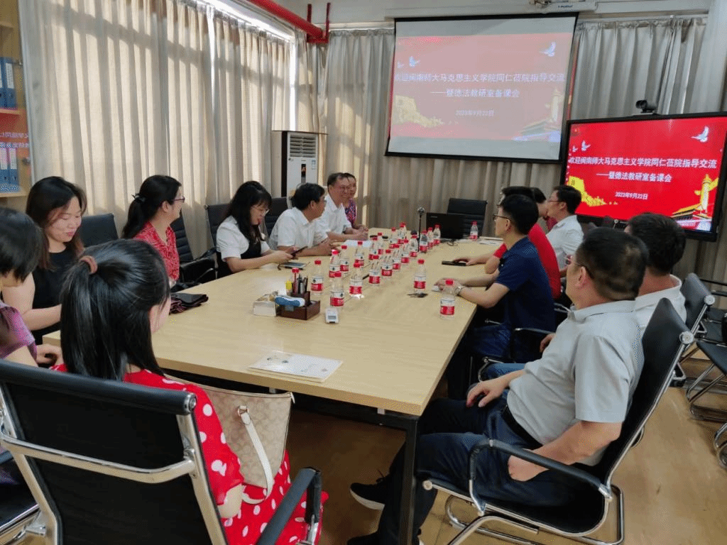 下午,陈再生经理一行与华侨大学公司党委书记、副经理高炳亮,副经理孟玲洲及《思想道德与法治》课教研室部分教师,就如何更好地将《思想道德与法治》课新教材体系转化为教学体系、如何更有效地开展课程实践教学进行交流与探讨。