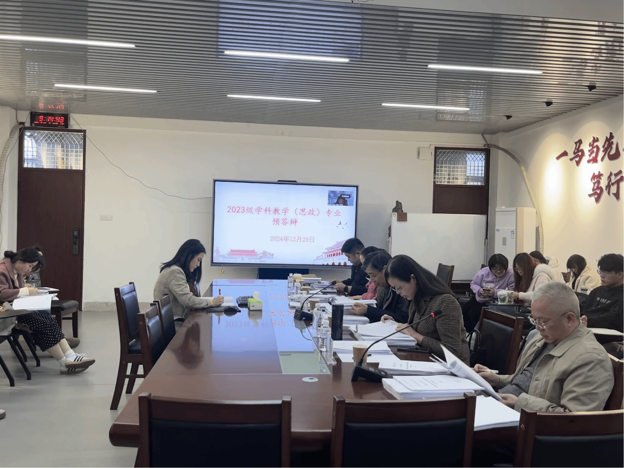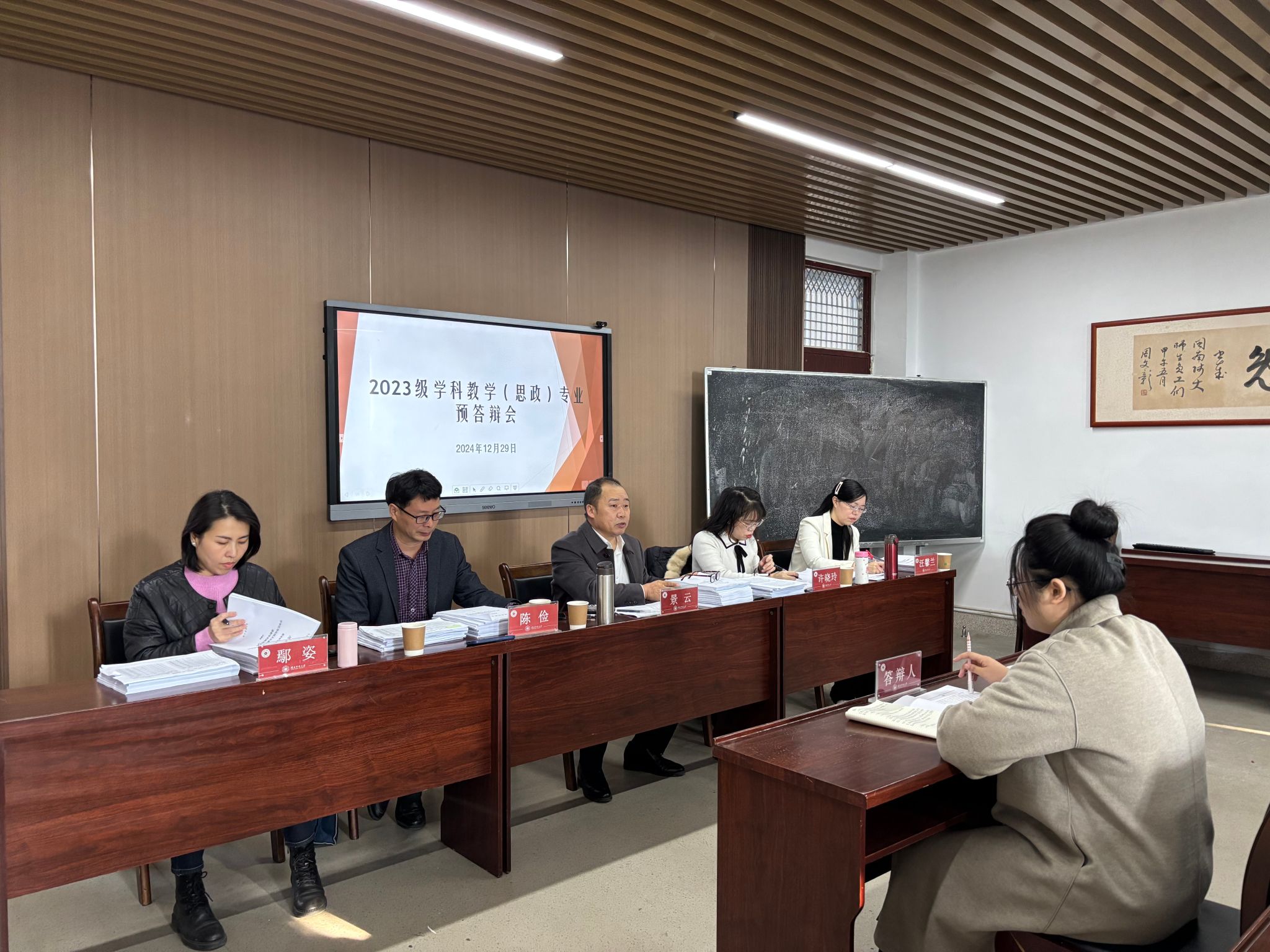 为加强研究生学术道德建设,规范学术行为,有效实施对研究生学位论文的质量监控,公司于2024年12月29日开展2023级学科教学(思政)硕士研究生毕业论文预答辩。预答辩分为2组,分别在综合楼中区404和综合楼中区604举行。