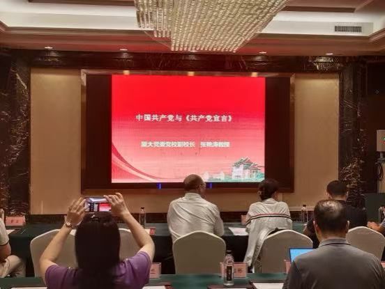 厦大党委党校副董事长张艳涛教授倾情讲授《中国共产党与〈共产党宣言〉》。张教授首先明确为什么要研读《共产党宣言》,随后从国内外背景出发讲述《共产党宣言》的诞生、几篇重要序言、中译本等内容。随后,张教授全面分析“为人类构建了一个意义世界”“消灭私有制”“两个必然”等共产党宣言的主要观点,最后强调中国共产党是《共产党宣言》的忠实传人,要学精用好用活《共产党宣言》。