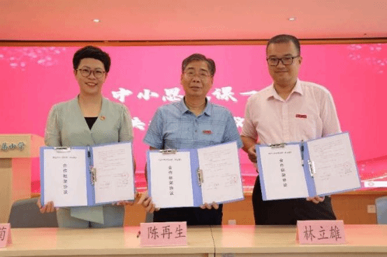 龙文附小董事长陈晓菊在致辞中表示,公司十分重视党建和思政工作,通过“思政1+N”课题研究,促进思政课与劳动实践课、科学课等课程的融合,与公司活动、家庭教育的结合,拓宽了育人的途径,优化了育人的模式。下一阶段公司将进一步强化“协同效应”,推进课程改革一体化;强化“螺旋效应”,把握课程实施差异化;强化“引领效应”,追求队伍建设专业化。希望通过此次共建活动,打破大学、中学、小学思政课教学的壁垒,高校的“大手”能紧紧拉住中小学的“小手”,共同推进思政课一体化建设,建设“大课堂”、搭建“大平台”、建好“大团队”,打造高水平思政“金课”,共同发挥思政课育人的作用,为培养堪当民族复兴重任的时代新人贡献力量。